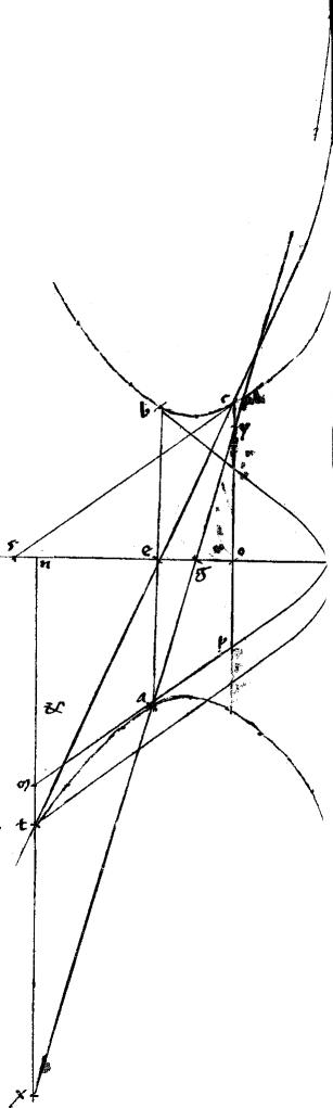 1 Sint contrapositae a b. // Centrum g. // Tangentes adb. // Coniungens tactus ab. // Producta dg secet, per 39am 2i ipsam ab per medium apud e. // Et per d concursum aequidistans ab ducatur zdhlq. // Per e autem utcumque excitetur tecl secans quidem periferias apud t c occurrensque ipsi zdhlq apud l. // Dico iam quod est ut tl lc sic te ec. 2 // Ducantur enim per puncta t c aequidistantes ipsi ab ipsae xtmn cyop. Aequidistantes autem ipsi ad ipsae tr cs. // Et ducatur xagq. // Eritque, propter similitudinem et proportionem triangulorum ut xa ay sic ma ap atque te ec propter similiter sectas et tn co. 3 // Itaque ut tn co sic ma ap 1 trn cso itemque sic xma ayp propter similitudinem [S:118] et proportionem figurarum. |