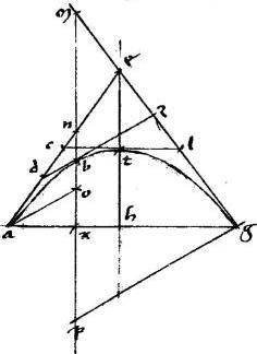 Sit parabole abg. // Tangentes autem ade ezg dbz. // Tactuum puncta a b g. // Dico iam quod est, ut gz ze sic ed da et sic zb bd. 2 // Coniungatur enim ag et secetur per medium apud h. // Et ducatur eh quae, per 29am secundi Conicorum, diameter erit sectionis. // Si igitur eh incedat per b tactum iam per 5am praedicti dbz aequidistat ipsi ag et ah applicata est ipsi ebh diametro. 3 // Quare per 35am primi Conicorum eb aequalis bh et per 2am sexti Euclidis gz aequalis ze item ed aequalis da nec non zb aequalis bd in quo casu manifestum est propositum. // Sed iam diameter eh non veniat per b sed per t punctum. // Et ducatur per t penes ipsam ag linea ctl quae, per 32am primi Conicorum, tanget sectionem apud t. 4 // Quare tunc per eadem, quae prius, ac erit aequalis ce atque el aequalis lg. // Ducatur per b penes eh ipsa mnboxp. // Per puncta vero a g ipsae ao gp aequidistantes ipsi dbz. // Quoniam igitur mb aequidistat eh diametro, diameter est, per 46am primi Conicorum ad quam ipsae dbz ao gp ordinate applicatae sunt. // Sed gm tangens. // 5 Ergo, per 35am primi mb aequalis bp et per 2am 6i Euclidis mz aequalis zg. // Fuit et el aequalis lg. // Igitur, ut mg gz sic eg gl. [A:89v] // Et permutatim, ut mg ge sic zg gl sed propter similitudinem triangulorum ut mg ge sic xg gh. // Igitur, ut zg gl sic et xg gh. 6 // Ut autem hg ga sic lg ge dimidium siquidem utrumque utriusque. // Ex aequo igitur, ut zg ge sic xg ga. // Et conversim eg gz sic ag gx. // Et disiun[S:119]ctim, sicut ez zg sic ax xg. // Et conversim, gz ze sicut gx xa. 7 // Rursus, quoniam diameter est mb tangens autem an et applicata ao ideo, per 45am primi Conicorum, aequalis est nb ipsi bo et per 2am sexti Euclidis nd aequalis da est autem et ec aequalis ca. // Igitur, ut ea ac sic na ad. // Et permutatim, ut ea an sic ca ad. // Sed, ut ea an sic ha ax propter similitudinem triangulorum. 8 // Igitur, ut ca ad sic ha ax. // Est autem ut ga ah sic ea ac dupla siquidem utraque utriusque. // Ex aequo igitur, ut ga ax sic ea ad. // Et disiunctim, sicut gx xa sic ed da. 9 // Demum quoniam, ob similitudinem triangulorum ut gx xa sic gp ao ut autem gp ao sic zb bd (quandoquidem dimidia duplis proportionalia, namque zb 1/2 ipsius gp quoniam bm1 1/2 ipsius mp. // Et bd 1/2 ipsius ao sicut bn 1/2 ipsius no). Idcirco, et zb bd sicut gx xa. 10 // Ostensum est ergo, quod gz ze atque ed da nec non zb bd se habet sicut gx xa hoc est eamdem habet rationem. // Quod fuit demonstrandum.