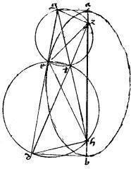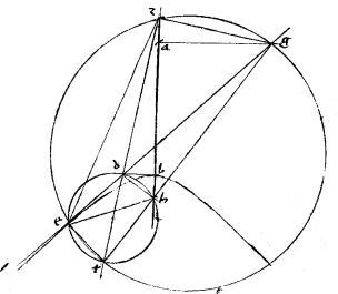 Supponantur1 eadem. // Et coniungantur ez eh. // Dico iam quod angulus gez aequalis est angulo deh. // 2 Nam, cum per 45am huius rectus sit angulus dht et per praecedentem, rectus etiam angulus det. // Iam super diametro dt circulus ibit per e h puncta. // Et eadem ratione, super tg diametro circulus lineatus ibit per e z puncta. // Quam ob rem per 20am tertii Euclidis angulus deh aequalis est angulo dth. // Itemque eidem dth angulo in hyperbole, vel eius contraposito gtz in ellipsi, aequalis est angulus gez. 3 // Igitur et angulus gez aequalis2 angulo deh. // Quod est demonstrandum. 3