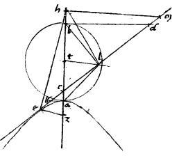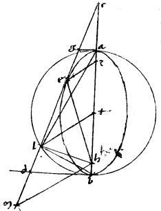 1 Sint enim eadem, quae prius. // Et centrum t. // Et coniungatur ez. // Ipsae autem ba dg concurrant ad c. // Et ipsi ez aequidistans ducatur tl. // Dico iam quod tl aequalis est ipsi tb. // Coniungantur enim eh al lh lb. // Sitque ipsi ez aequidistans hm. // Quoniam igitur az hb aequales: et ta tb aequales ideo et zt th aequales quare et el lm aequales. 2 // Et, quoniam per 48am huius, anguli gez deh sunt aequales. // Et propter aequidistantiam linearum, anguli gez emh aequales. // Ideo ipsi emh deh anguli aequales. // Quare, per 6am primi Euclidis ipsae lineae eh hm aequales. // Fuere autem el lm aequales. // Et hl communis. // Ergo aequilatera invicem cum sint hel hml. // Erunt, [A:93v] per 8am primi Euclidis et invicem aequiangula. 3 // Quare anguli hle hlm aequales et hl kathetus ad dg. // Igitur, per praecedentem, angulus alb rectus. // Quam ob rem, circulus super centro t diametroque ab descriptus ibit per l punctum. // Unde ex diffinitione circuli tl aequalis est ipsi tb. // Quod fuit demonstrandum.