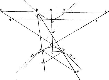 1 Sint contrapositae ab gd. // Quarum centrum o. // Tangentes aezh betc. // Coniungens tactus ab. // Quae per medium secetur apud l. // Et coniuncta le producatur per puncta odx diameter enim erit, per 29am secundi Conicorum. // Ipsi autem ae aequidistans linea bn. // Ipsique be aequidistans linea am. // Et per relictum in altera sectionum punctum g perque tactus a b [A:97v] agantur lineae gan gbm. |